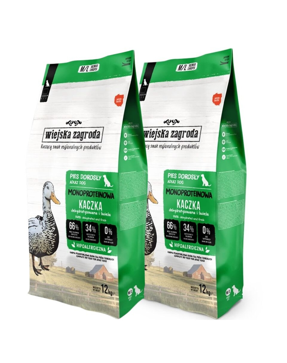 WIEJSKA ZAGRODA Monobiałkowa Kaczka dla psów chrupki M/L 2x12 kg