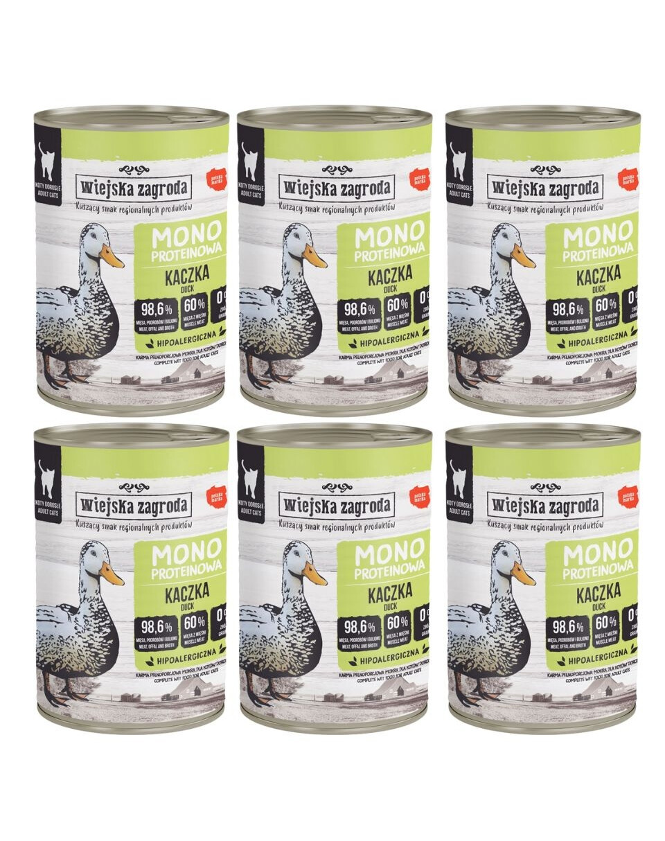 SKŁAD: 70 % kaczka (60 % mięso, 10 % wątroba), 28,6 % bulion z kaczki, 1 % składniki mineralne, 0,2 % olej z łososia, 0,1 % drożdże piwne suszone, 0,1 % ekstrakt Yucca Mojave.