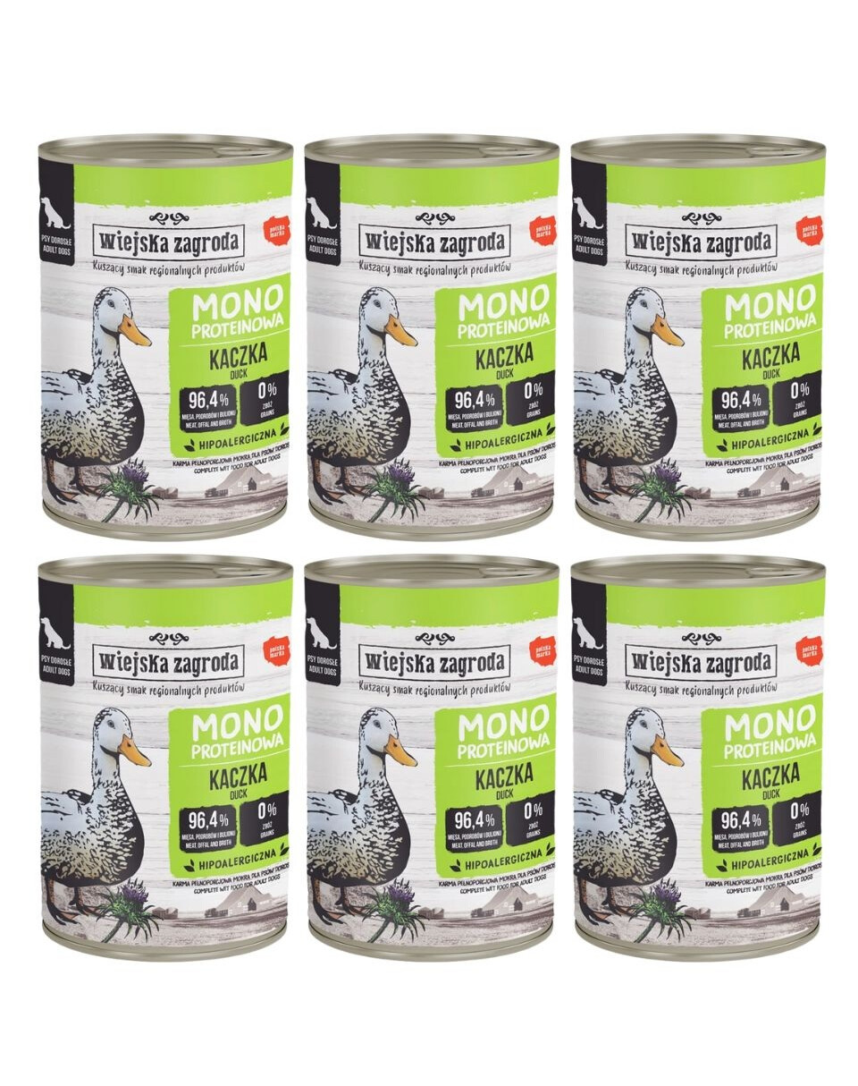 WIEJSKA ZAGRODA Monobiałkowa Kaczka mokra karma dla psów 6x400 g