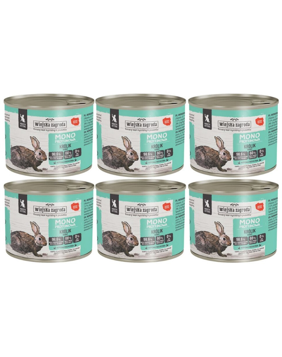 WIEJSKA ZAGRODA Monobiałkowa Królik mokra karma dla kociąt 6x200 g