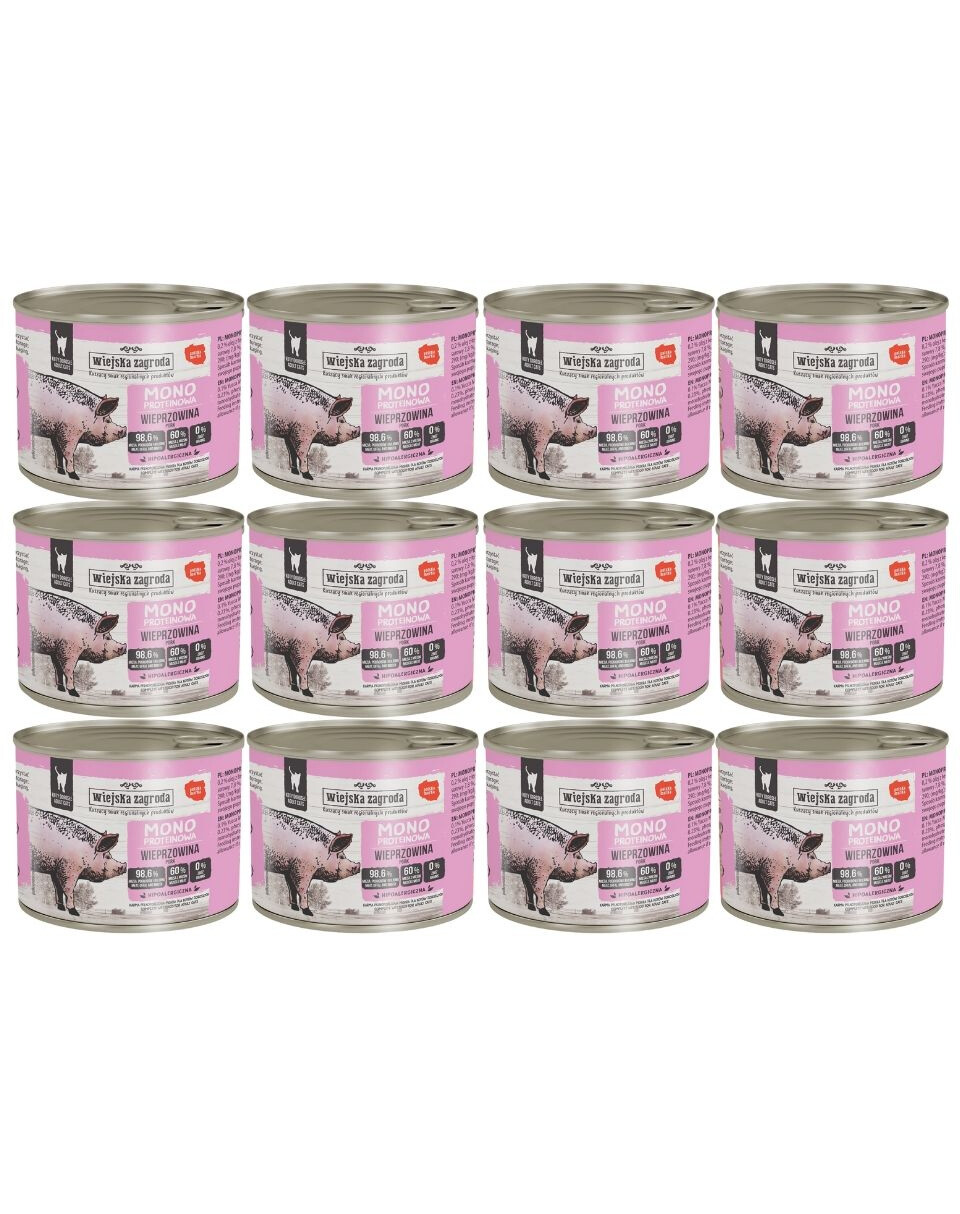 WIEJSKA ZAGRODA Monobiałkowa Wieprzowina mokra karma dla kotów 12x200 g