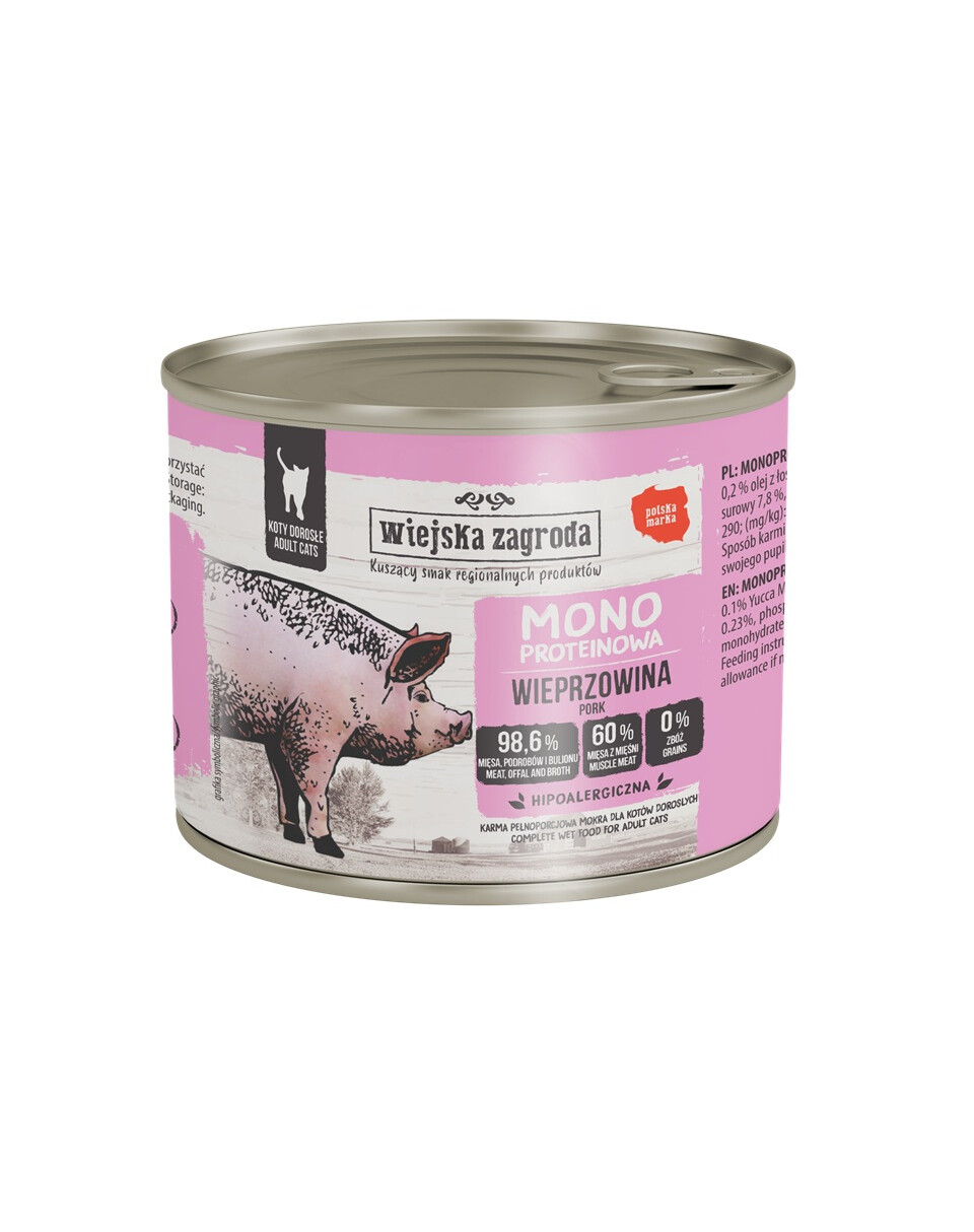 Poznajcie monoproteinowe karmy mokre Wiejska Zagroda dla kota. Każda puszka zawiera jeden rodzaj mięsa, które plasuje się na pierwszym miejscu każdego składu!
