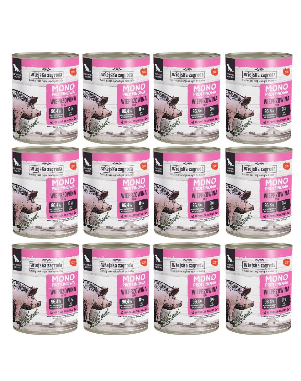 WIEJSKA ZAGRODA Monobiałkowa Wieprzowina mokra karma dla psów 12x800 g