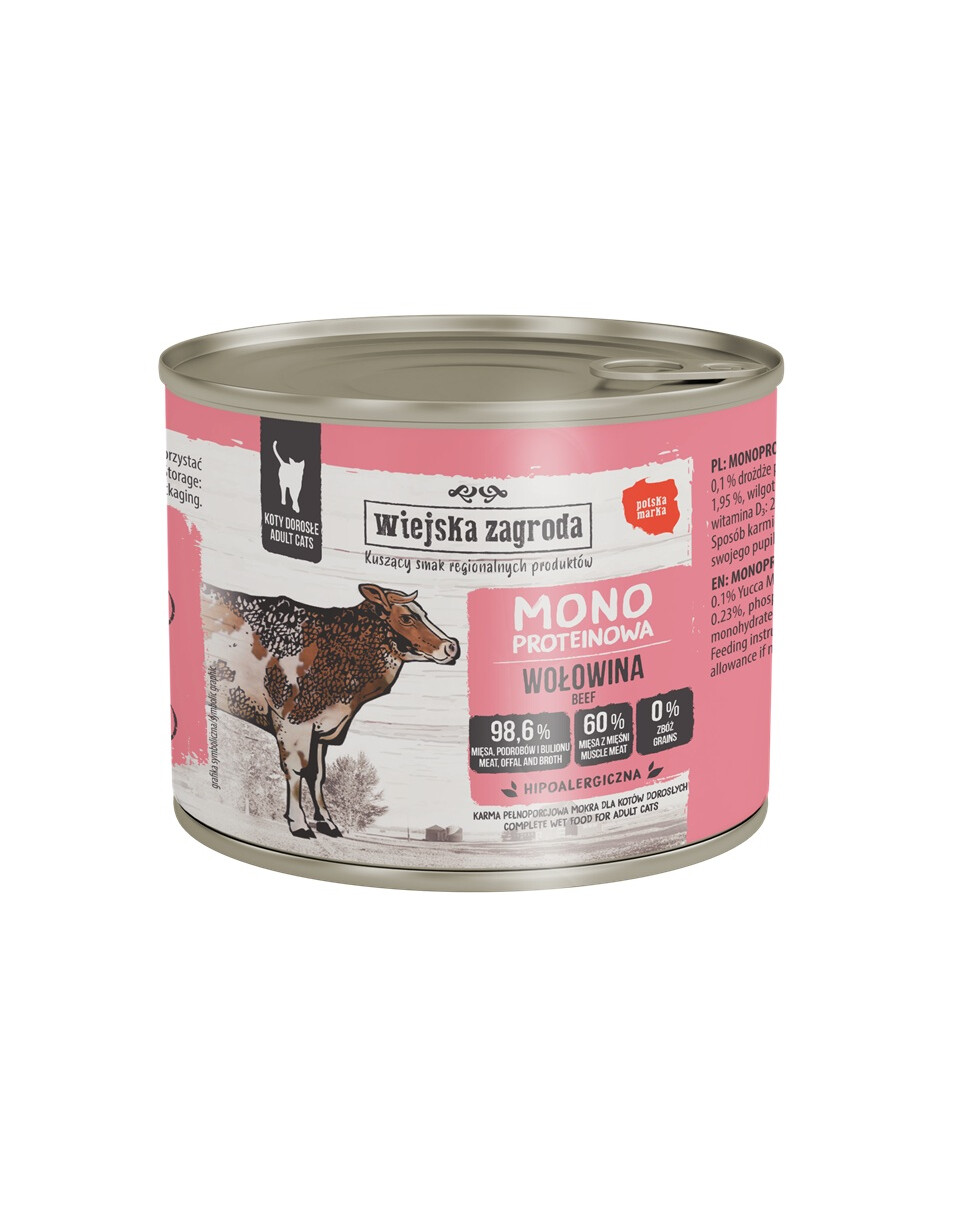 Poznajcie monoproteinowe karmy mokre Wiejska Zagroda dla kota. Każda puszka zawiera jeden rodzaj mięsa, które plasuje się na pierwszym miejscu każdego składu!