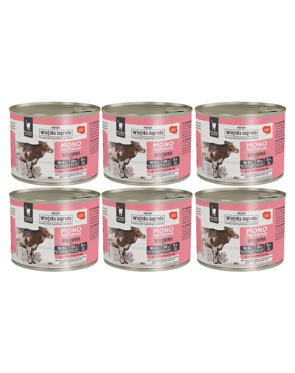 WIEJSKA ZAGRODA Monobiałkowa Wołowina mokra karma dla kotów 6x200 g