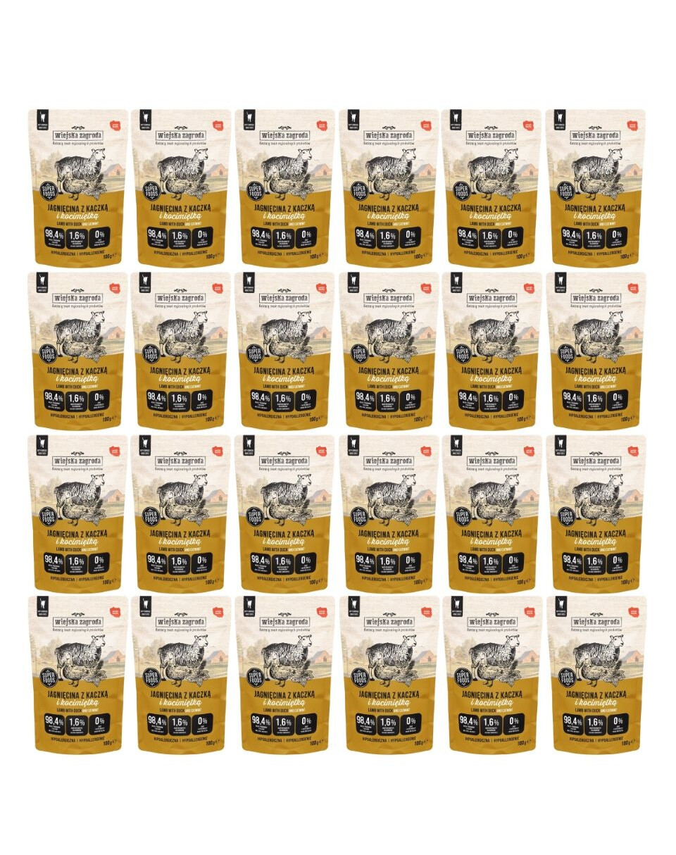 Dlaczego warto wybrać mokrą karmę Jagnięcina z Kaczką z dodatkiem kocimiętki Wiejska Zagroda?Wiejska Zagroda karma mokra dla kota Jagnięcina z Kaczką to idealny wybór na codzienne posiłki dla kotów dorosłych. Dzięki wysokiej zawartości mięsa i podrobów oraz zdrowym dodatkom, karma spełni oczekiwania nawet najbardziej wymagających kocich smakoszy. Dzięki praktycznym saszetkom 100 g karmienie kota jest niezwykle wygodne. Wybierz polską markę cenioną za najwyższą jakość składników i zapewnij swojemu pupilowi wszystko, co najlepsze!