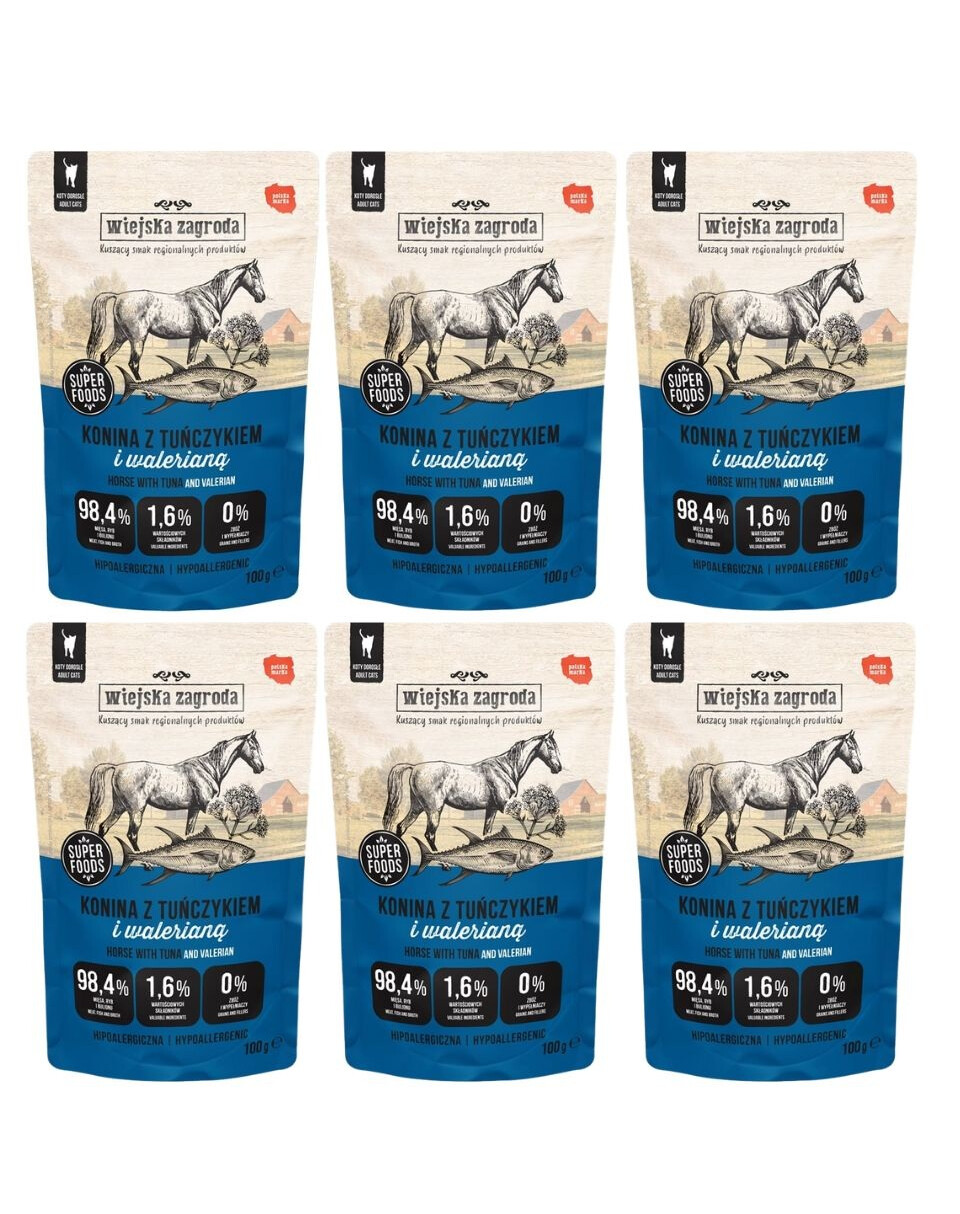 WIEJSKA ZAGRODA Superfoods Konina z tuńczykiem i walerianą mokra karma dla kota 6x100 g