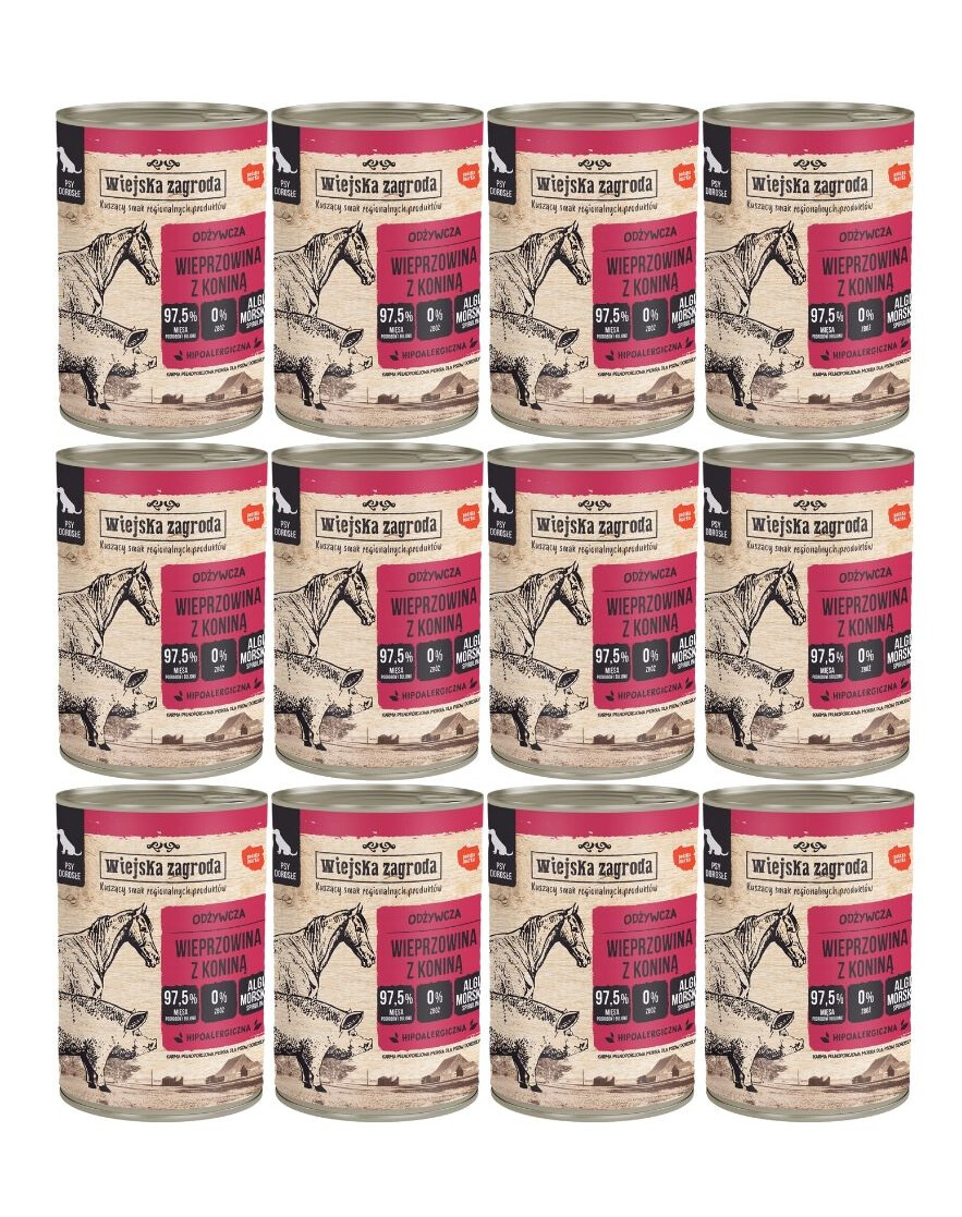 Karma pełnoporcjowa mokra dla psów dorosłych Wiejska Zagroda Wieprzowina z koniną