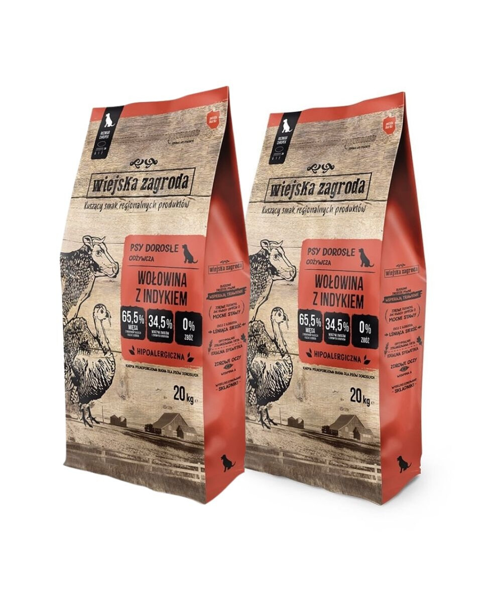 WIEJSKA ZAGRODA Wołowina z indykiem to pełnoporcjowa karma dla psów większych ras