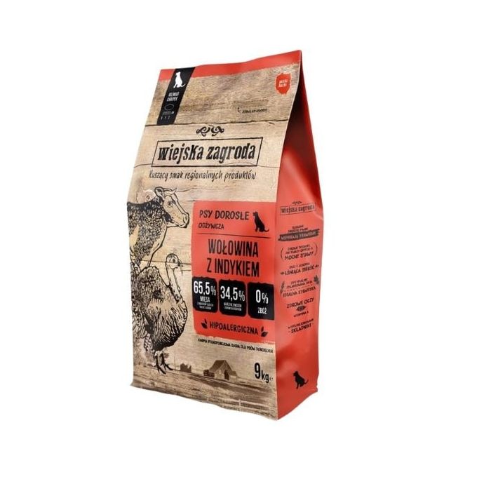 WIEJSKA ZAGRODA Wołowina z indykiem chrupki L 9 kg