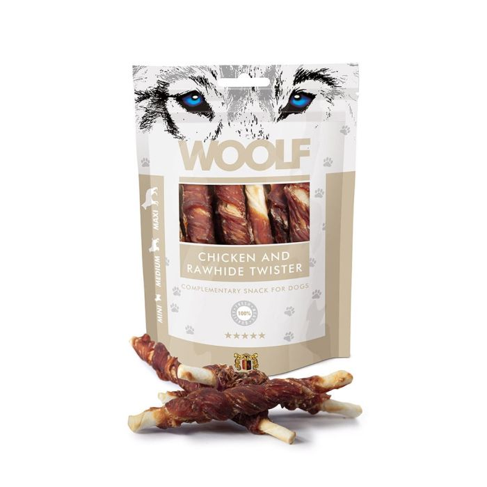 WOOLF Chicken And Rawhide Twister 100g suszona skóra owinięta kurczakiem