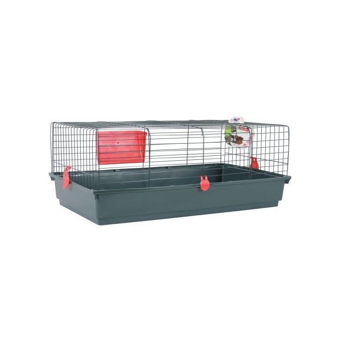 Klatka dla królików i świnek morskich. Klatka ma podnoszoną całą przednią część. Wykonana z materiałów nietoksycznych dla zwierząt: bezołowiowa farba epoksydowa oraz plastik polipropylenowy.