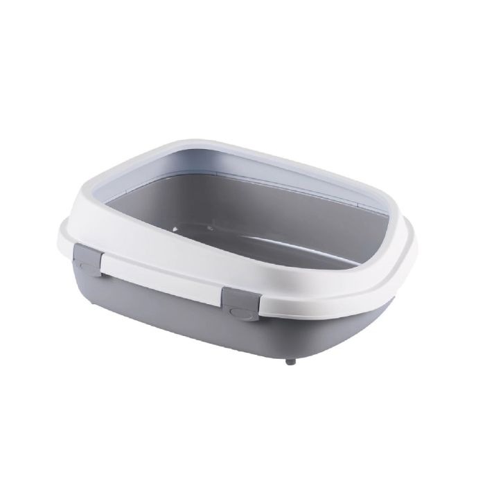 Szeroka i wysoka ramka zapobiega wydostawaniu się żwirku. Oddzielny spód umożliwia wygodne gruntowne czyszczenie kuwety. Obniżony próg z frontu ułatwia wchodzenie do kuwety kotom starszym oraz kociętom.